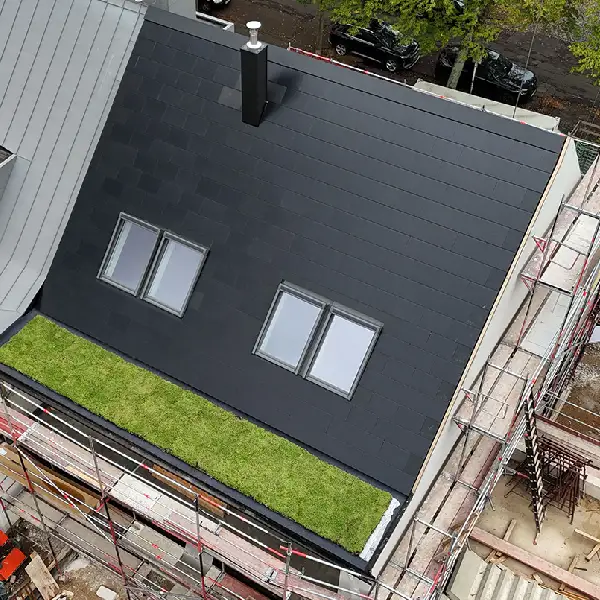Unser Multi-Energie-Dach setzt neue Maßstäbe: Hochleistungs-Solarmodule in Schindel- oder Biberschwanzoptik liefern maximale Energieausbeute – elegant eingebettet in die Dachfläche. Die Glas-Glas-Technologie sorgt für Langlebigkeit und außergewöhnliche Widerstandsfähigkeit gegenüber Wetter, Wind und Belastung. Ein Premiumsystem, das Design und Leistung perfekt vereint.